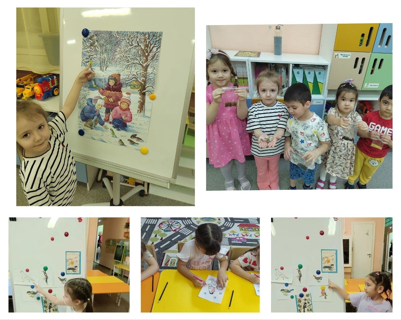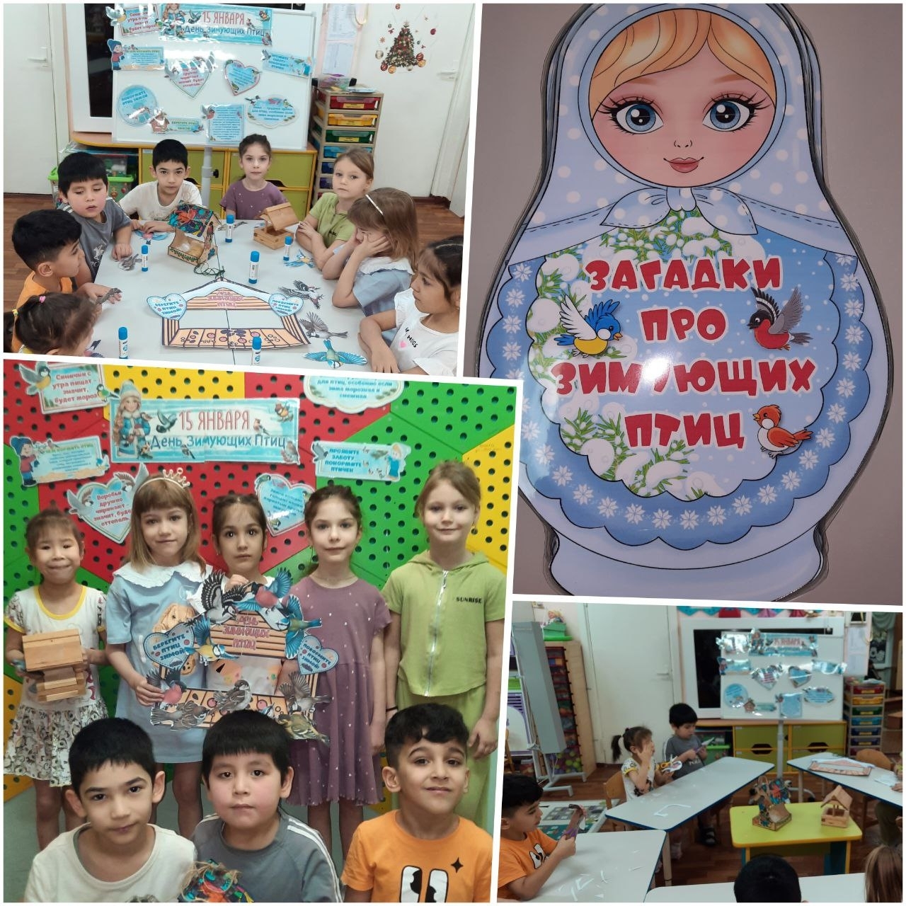 С детьми были проведены беседы, рассматривали иллюстрации зимующих птиц, познакомились с рассказами "Зимние гости", "Чем дятел зимой кормится", играли в дидактические игры "Узнай птицу", "Какая птица лишняя?". Была проведена акция "Покормите птиц зимой!", воспитанники вместе с детьми собирали корм для крылатых. При проведении таких мероприятий формируется понятие о заботливом отношении к птицам.